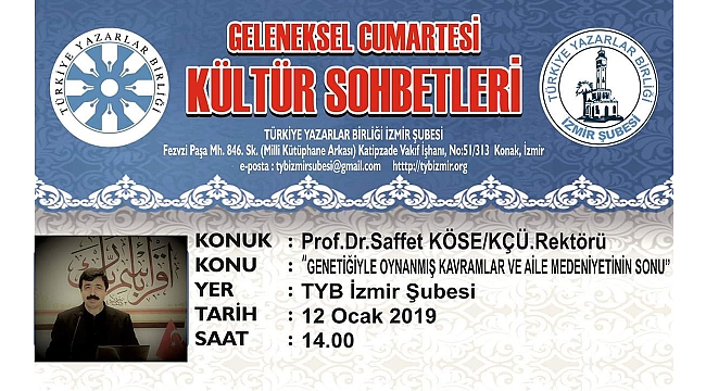 HABERİNI OKU köşe yazarı, Türkiye Yazarlar Birliği üyesi ve A.Levent ERTEKİN'in kurucu üyesi olduğu İzmir Yazarlar Birliğinin 2019'un ilk Cumartesi Kültür Sohbeti Katip Çelebi Üniversitesi Rektörü Prof. Dr. SAFFET KÖSE HOCA ile başlayacak.