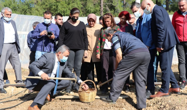 Konuşmaların ardından üretici Mehmet Çınar’a ait 250 m2 alanda salep yumrularının dikimi gerçekleştirildi.