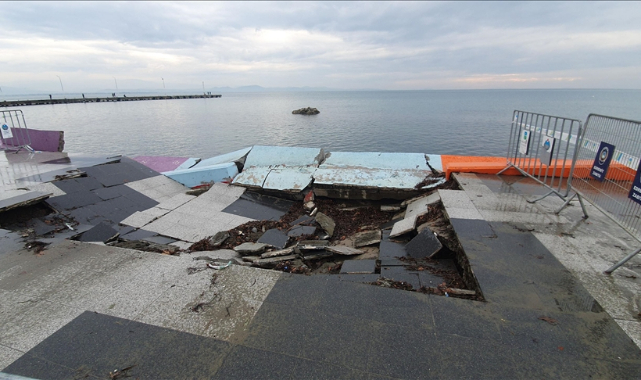 Akçay Mahallesi'nde yürüyüş amaçlı da kullanılan kordonda, deniz ile karanın ayrıldığı bölümdeki taşlardan bazıları yerlerinde söküldü. Kordonun çöken bölümüne Balıkesir Büyükşehir Belediyesince bariyerler konularak güvenlik önlemi alındı.
