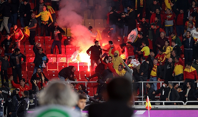 İzmir Valiliğinden yapılan açıklamada, Gürsel Aksel Stadı'ndaki Göztepe-Altay müsabakanın 19. dakikasında siyah-beyazlı taraftarların yer aldığı tribünden yanıcı maddenin Göztepe taraftarlarına fırlatıldığı belirtildi.