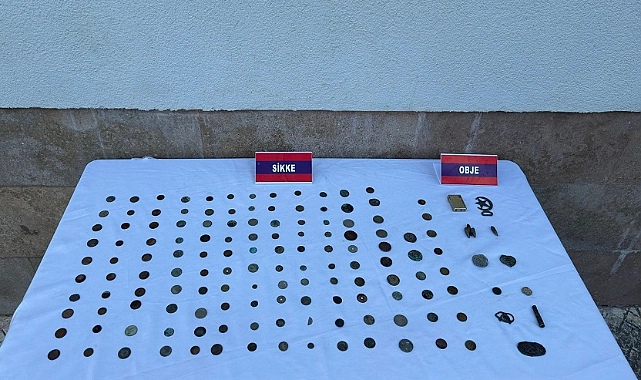 Araçta ve şüphelinin üzerinde yapılan aramada Roma ve Bizans dönemlerine ait olduğu değerlendirilen 4 altın sikke,130 gümüş sikke ve 2 gümüş mühür ele geçirildi.