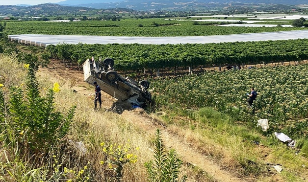 İlçe merkezinden Dindarlı Mahallesi istikametine giden Alime Çetin (52) idaresindeki 45 H 7006 plakalı kamyonet, sürücüsünün direksiyon hakimiyetini kaybetmesi üzerine takla atarak yol kenarındaki tarlaya devrildi.