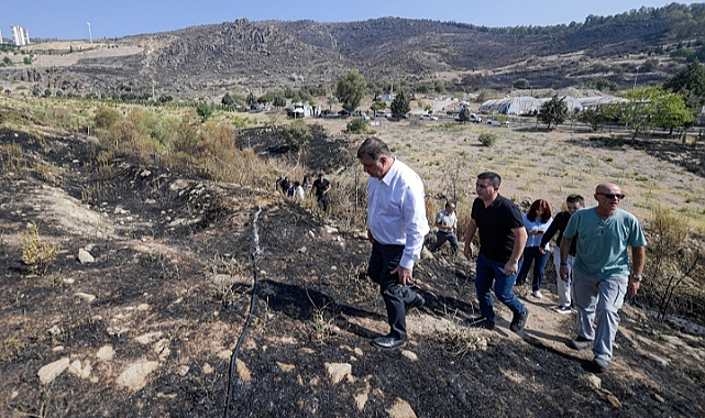 İzmir Büyükşehir Belediye Başkanı Dr. Cemil Tugay, ciddi tahribat yaratan yangınların ardından Karşıyaka ile Bayraklı’da incelemelerini sürdürdü. Zübeyde Hanım Mahallesi'nde ormanlık alan ile yerleşim yerleri arasında bariyer görevi üstlenen Mutluluk Ormanı’ndaki yanmış ağaçları inceleyen Başkan Tugay, ormanın kurtarılması için yapılacak çalışmaları değerlendirdi. Tugay, Doğançay Mahallesi’nde de yangından zarar gören üreticileri ziyaret ederek hasar için gerekli çalışmaları başlatacaklarını belirtti.