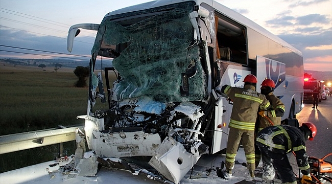 Uşak'ta yolcu otobüsü ile kamyonun çarpışması sonucu 2 kişi hayatını kaybetti, 18 kişi yaralandı.