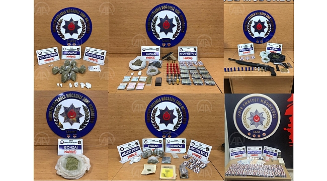 İzmir Emniyet Müdürlüğü ekiplerince, 1-7 Mart tarihlerinde gerçekleştirilen operasyonlarda 4 kilo 663 gram esrar ve skunk, 2 kilo 124 gram sentetik kannabinoid, 3 bin 354 yeşil reçeteyle satılan ilaç, 242 gram metamfetamin, 274 ecstasy, 33 gram eroin, 1 kök kenevir ile 5 tabanca, 2 tüfek, 196 fişek ve uyuşturucu ticaretinden elde edildiği değerlendirilen 7 bin 10 lira ele geçirdi.