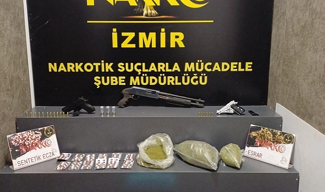 İl Emniyet Müdürlüğü Narkotik Suçlarla Mücadele Şube Müdürlüğü ekipleri, Bornova'da ilçesinde faaliyet gösteren bir kargo firmasındaki kargo paketlerinde uyuşturucu madde olduğu bilgisi üzerine belirlenen bu adres ile Buca, Gaziemir, Konak ve Urla ilçelerindeki 4 adrese operasyon düzenledi.