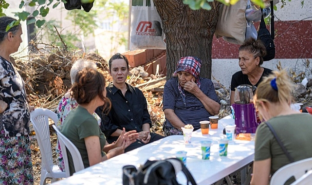 İzmir, iki günü aşkın süredir Yamanlar’da devam eden orman yangınına karşı mücadelesini sürdürürken bir yandan yangında hasar gören yurttaşların yaraları sarılmaya çalışılıyor. İzmir Büyükşehir Belediye Başkanı Dr. Cemil Tugay’ın eşi Öznur Tugay, yangında yerleşim yerleri etkilenen yurttaşları ziyaret ederek, geçmiş olsun dileklerini iletti. Öznur Tugay ilk olarak Karşıyaka Zübeyde Hanım Mahallesi’nde orman yangının etkisiyle çatısı yanmaya başlayan ve İzmir Büyükşehir Belediyesi İtfaiye ekipleri tarafından söndürülen Manolya Apartmanı’na gitti. Apartman sakinlerinin sorunlarını ve taleplerini dinleyen Öznur Tugay, resmi çalışmaların ardından vatandaşların güvenle evlerine girebilmeleri için tüm desteği vereceklerini söyledi.