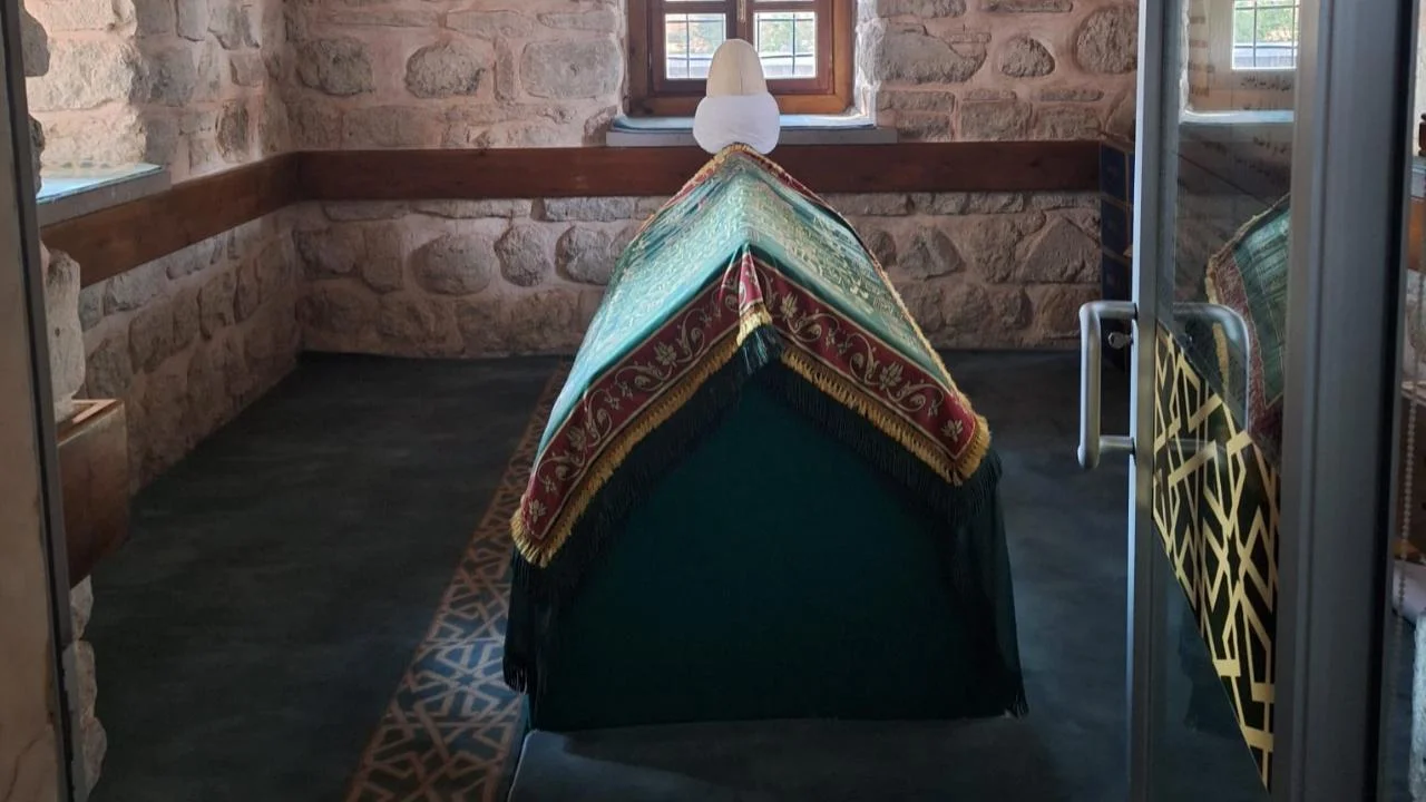 Dut ağaçlarına sarılıp tefekkürde bulunduktan sonra Hoca Ahmet Fakih Mescidine doğru ilerliyoruz. Zaviye yıkıldıktan sonra yapılmış olan maneviyatı yüksek, küçük sevimli mescide girince sağ taraftaki kapıya, bizi kendine doğru çeken güzel bir koku yoğunlaşıyor. Başımızı eğerek ancak geçebileceğimiz bu kapının üzerindeki kitabede: “Pek ulu, pek büyük bilgin, üstün ibadet sahibi, gariplerin hükümdarı, meczupların efendisi, doğunun ve batının kutbu” yazmakta.