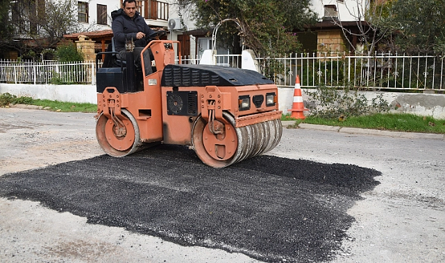 Foça Belediyesi Fen İşleri ekipleri, Yenifoça’da asfalt yol onarımları gerçekleştiriyor.