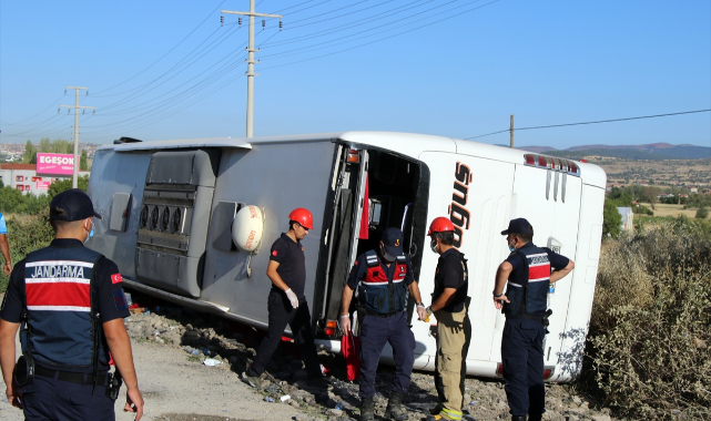Uşak'ta yolcu otobüsünün şarampole devrilmesi sonucu 33 kişi yaralandı.