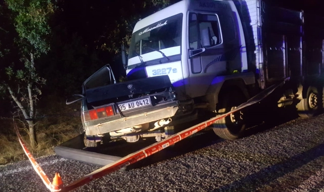 İZMİR (AA) - İzmir'in Bergama ilçesinde önünde seyreden motosiklete çarptıktan sonra karşı yönden gelen kamyonla çarpışan otomobilin sürücüsü ve yanındaki kardeşi hayatını kaybetti.